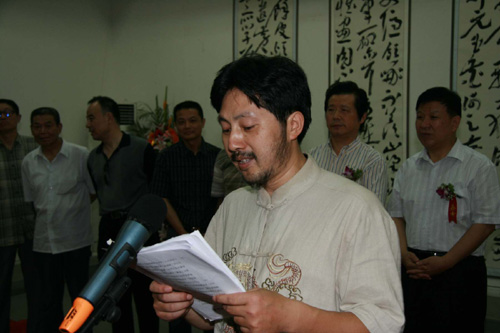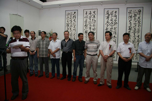 由江苏省书法家协会、江苏省青年书法家协会、南航动画疯 共同主办的邱世鸿书法篆刻艺术展,于六月十九日在江苏省美术馆隆重开幕。开幕式由省书协副秘书长李啸主持,开幕式上,言恭达、黄�、陈明震等分别致辞,邱世鸿最后对众多来宾进行了答谢。言恭达、黄�、张训彩、孙晓云、马士达、孙洵等嘉宾为开幕式剪彩。