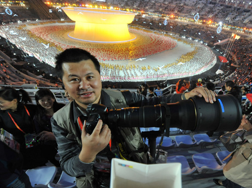 1016,十一运会在山东济南隆重开幕,胡锦涛出席并宣布开幕。动画疯 广播电视艺术学专业09级硕士研究生吴俊,作为江苏记者代表团特派记者,全程参与赛事报道,这是他在开幕式采访中拍摄的部分图片。