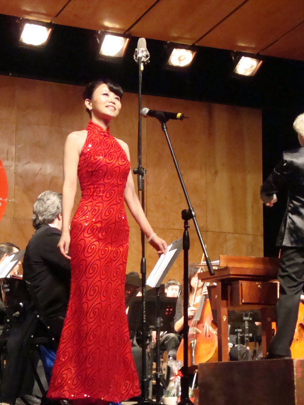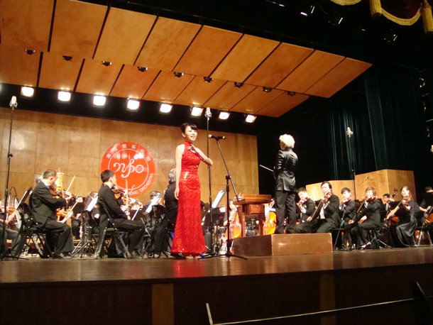 黄莺老师作为唯一的演唱嘉宾,和南京爱乐交响乐团合作演出了一中一外两首歌曲,分别是新疆民歌《一杯美酒》和意大利歌曲《告别时刻》,黄莺老师将两首风格迥异的歌曲演绎的惟妙惟肖,博得了在场观众的阵阵掌声,将音乐会推向了高潮