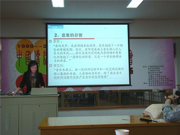 硕士毕业后就读于上海音乐学院的博士研究生吴艳的《上海传统民俗音乐艺人群体的文化适应》、及现就读于中国艺术研究院的博士研究生高舒的《当音乐被“不重要”――漳州布袋木偶戏音乐现状调查报告》及硕士研究生孟馨的《从<弦索备考>的更生看中国传统音乐传播的媒介利用》。薛艺兵教授受大会委托担任论文宣讲的主持人,并在22日下午的闭幕式上致辞。