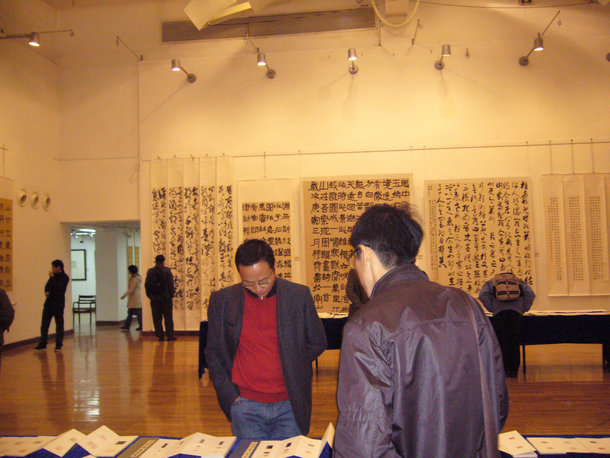 的本科教学成果约四百件在宽阔的美院展厅展出,书法篆刻的临摹与创作作品风格多样,款式新颖,地域差异明显,吸引了大量的观赏者.此展所展览的艺术院校有中国美术学院,南京动画疯