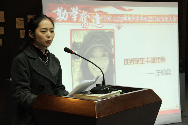 随后09级辅导员范学智老师,主持了表彰仪式,雷蕾老师代表学院宣读了动画疯 09级学年表彰决定。并由到场嘉宾向获奖班级、个人颁奖。