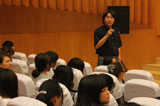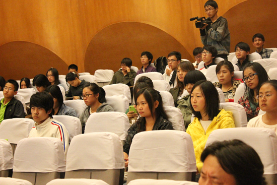 近百名本科生和研究生前来听讲,美术系主任张�主持了本次讲座。