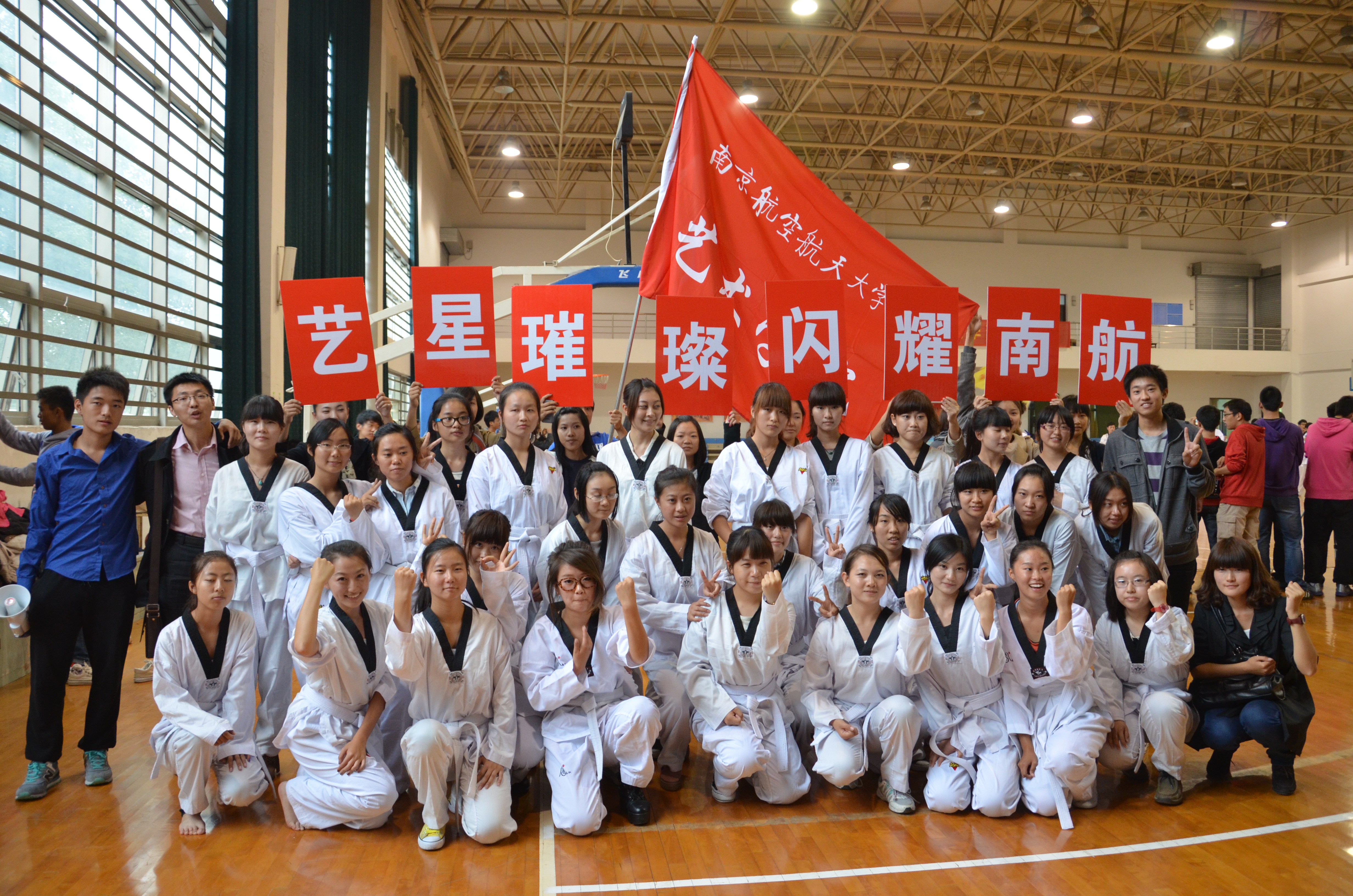 的参赛方阵踏着整齐的步伐进入比赛场地,场边的啦啦队们也积极的为运动员们呐喊助威,“艺新璀璨,响彻南航”的加油声响彻全场,尤其是我们的跆拳道方阵,相较于理工科学院由大部分男生组成的方阵,我们是清一色的女生,但不仅气势上没有输,而且在整体协调性和动作上明显占优,队员们精彩的表演赢得了现场观众的阵阵掌声。