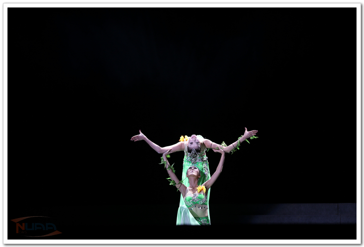 在这台晚会中,叶倩将舞蹈、民族声乐演唱以及昆曲演唱融合,旨在体现在校期间专业技能学习的综合性。晚会演出以昆曲《牡丹亭》选段《皂罗袍》开场,叶倩的一身精美古装,伴以婉转悠扬的唱腔,带来了强烈的艺术观感。民歌独唱《山里的女人喊太阳》在技巧和表现力上都达到了很高的水准。随后的舞蹈部分,叶倩连续表演了古典舞《爱莲说》、江南舞《绣》、傣族双人舞《藤枝叶》,展现了她对舞蹈各类风格的掌控力,赢得了观众不断的掌声。独舞环节最后一支古典舞《胭脂扣》,叶倩以一身红色旗袍登场,伴着电影《花样年华》的音乐,在舞台上姗姗而动,戚戚而行,俨然一代名伶,流落绝代芳华,令人潸然泪下。演出在由叶倩领舞、杨莉莉教授创作的群舞《春芽儿》中圆满结束。