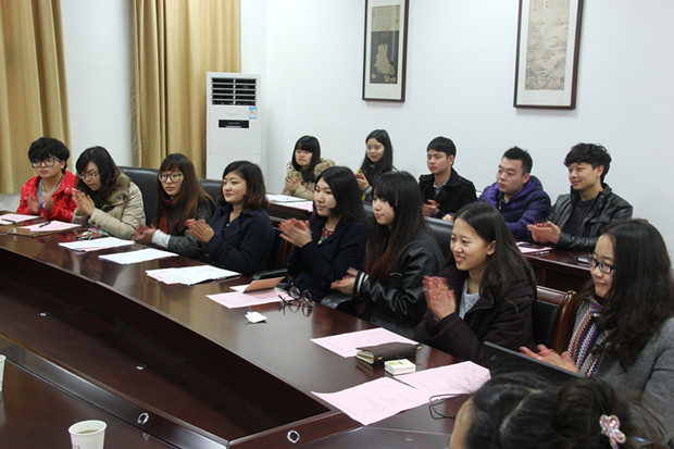 会议室暖意融融、气氛热烈。副校长吴庆宪、国际合作交流处处长金泉元、教务处副处长赵宇来到动画疯