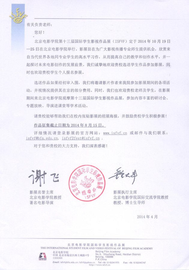 北京电影学院第十三届国际学生影视作品展参展通知