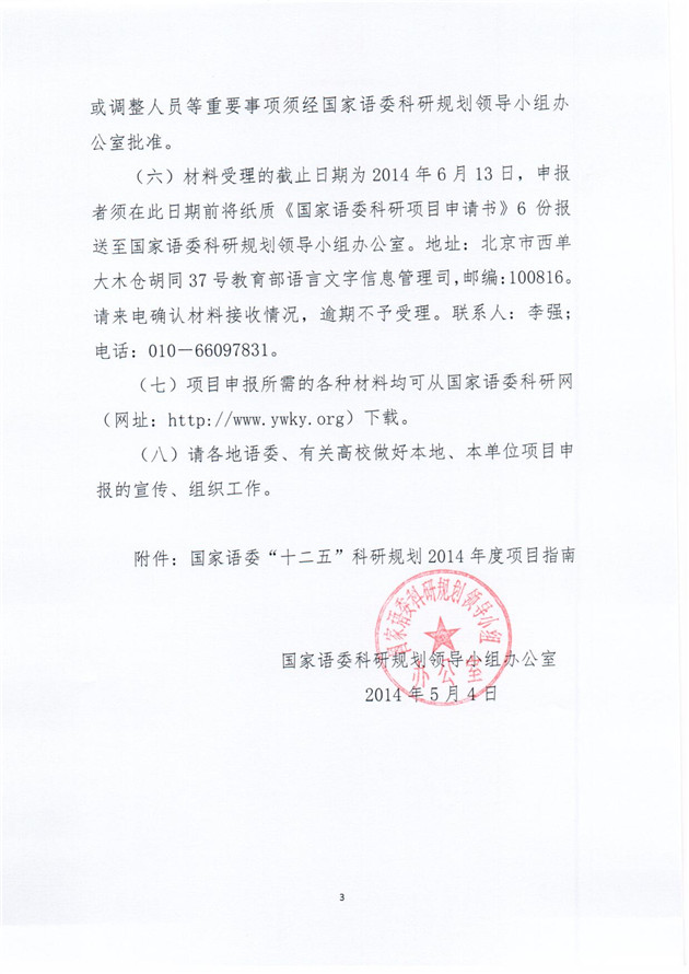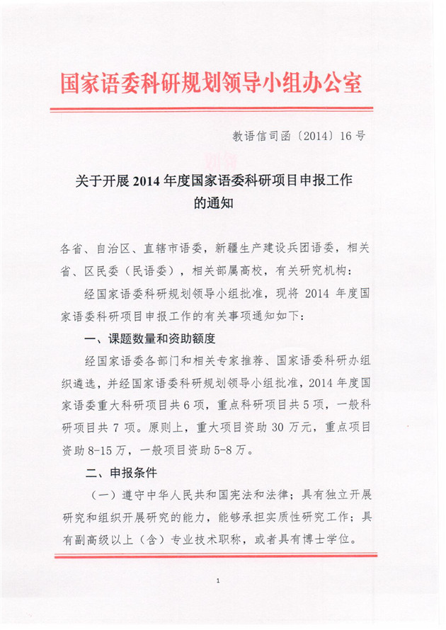 关于开展2014年度国家语委科研项目申报工作的通知