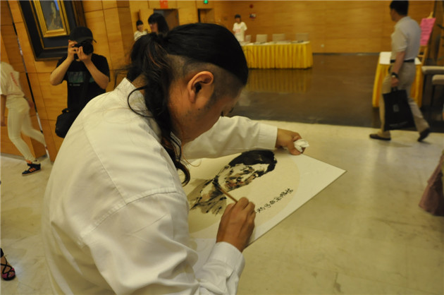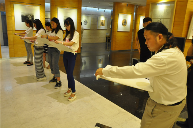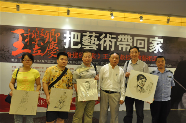为了体现“把艺术带回家”这一主题,开幕式上,王立庆教授和学生团队一对一为现代快报推荐的6位市民速写肖像,与读者进行了互动式体验。