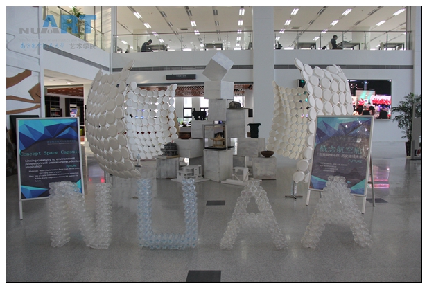 这次作品展主题是“概念性未来航空仓”,展出的主体是利用废旧物搭建的外形类似机舱的小屋,具有南航航空特色,又融入了环保理念。据悉,“航空舱”由动画疯 动画疯 戏剧影视美术设计专业学生设计,曾参加南京电视台生活频道《节约365周末英雄会》栏目,并凭借独特的设计获得“南京环保大使”称号。