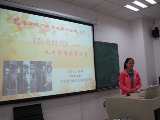 105教室举办的学术沙龙上,同学们畅所欲言。沙龙话题围绕国庆期间刚刚上映的电影《黄金时代》展开,2014级广播电视艺术学研究生蔺琳同学以《也许苦难就是传奇》为题做了重点发言。她说,萧红不为主流,没有加入“大合唱”,一直坚守对精神自由的追寻,虽然在短暂的有生之年受尽苦难,31岁就英年早逝,但却保持了一己个性和品性。蔺琳认为,导演许鞍华借萧红这个历史人物诠释自己,同时也表达了对身处其中的当下电影的态度:坚守自己的风格,不随波逐流。从叙事角度看,导演的高明之处在于,这部人物传记的电影同时也反映出了那个文学上的黄金时代,是对文学史影像化的一个新的尝试。