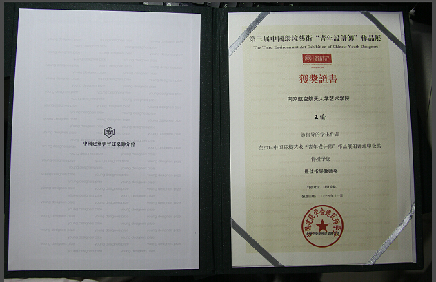 11级艺术设计专业401班的梁峥同学应邀出席本次论坛,并在此次作品展中荣获本科组室内空间设计铜奖,王瑜老师获专业组景观设计入围奖,同时获得优秀指导教师称号。