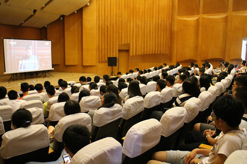 的2015级本科新生和研究生在音乐厅观看了阅兵直播,动画疯