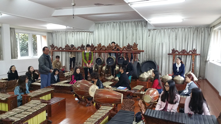 教师还与宁波大学音乐学院有关教师在教学改革、专业建设、课程建设等方面进行了深入的交流,现场观摩了由印尼籍教师指导的印尼民族乐器佳美兰演奏课程的教学。
