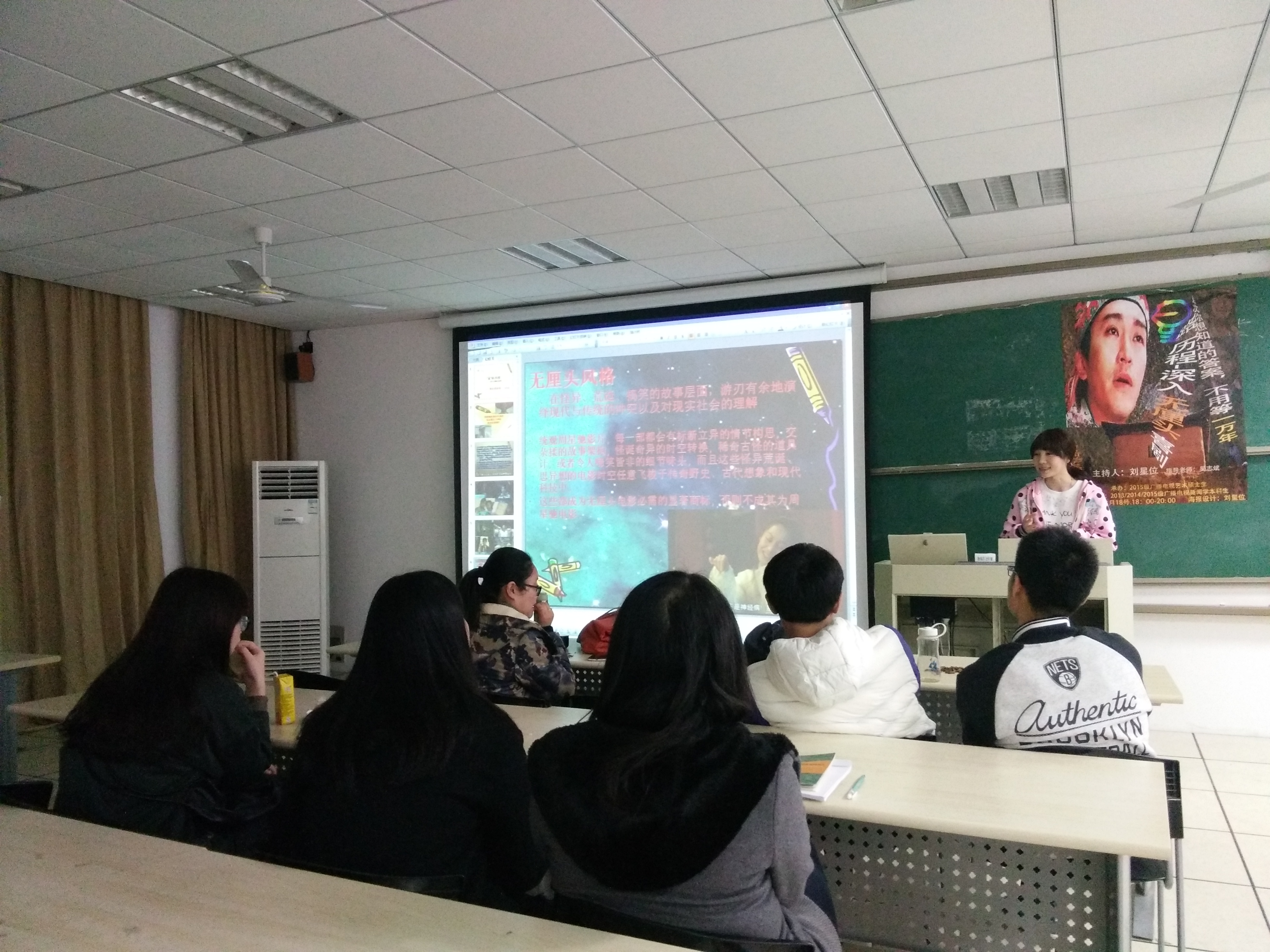 在一段又一段周星驰电影的精彩片段与经典对白中,沙龙正式开始。带着“周星驰‘无厘头’电影是真正意义上的喜剧还是悲剧”的问题,刘星位与在座同学展开了热烈的讨论。“鲁迅曾说,‘所谓悲剧就是把人生有价值的东西撕碎给人看所谓喜剧就是把人生无价值的东西撕碎给人看。’周星驰电影恰恰就是这种,能够让观众在笑声中流出眼泪,所以我认为,周星驰的电影并非单纯的喜剧。”为了进一步印证自己的观点,刘星位还援引周星驰最近的作品《美人鱼》进行了论述。“假如地球上连一滴干净的水,一口干净的空气都没有,你赚再多钱也是死路一条。”这样一句话最后从一个曾经视钱如命的人嘴里说出来,实则就是一种撕裂金钱物欲、还原社会本质的一种有利的证明,足以对观众的内心产生震动。
