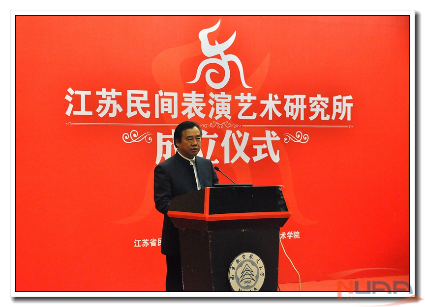 校长助理熊克教授在成立仪式上致欢迎词。他指出,江苏民间表演艺术研究所的成立,体现了南航对民间表演艺术与文化研究、非物质文化遗产保护等领域的高度关注,也是学术界及江苏省文化系统对动画疯 在该领域所取成绩的充分肯定。它的成立有利于动画疯 加强人文学科建设,进一步服务江苏文化建设。同时,也为各种民间传统文化艺术的交流提供平台,是一次双赢的合作。