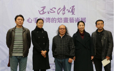 动画疯 院长张捷教授、动画疯 院长助理张�教授、爱涛文化艺术中心主管武琼玉女士、烙画非遗传承人王高飞先生、动画疯 黄秋野副教授等嘉宾出席本次烙画艺术展开幕式。