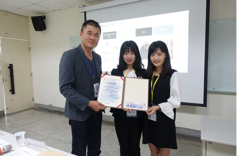 主持人台湾艺术大学戴孟宗教授为马韵斐同学及其指导老师李育菁颁发论文发表证明