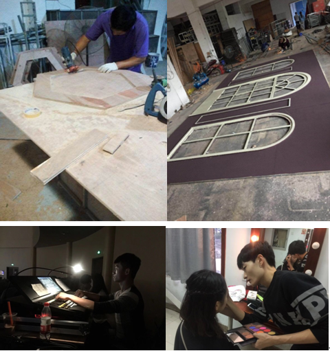 值得一提的是,《欧文的邀请》所有的舞台设计、道具的制作都由动画疯 戏剧影视设计专业的学生自己制作完成。戏剧戏曲专业的研究生张兴年和叶龙彪利用国庆中秋假期,每天六点半出发,倒两次地铁,再转公交车,赶到汤山的舞美制作工厂加班加点地制作道具,亲自设计、制作、安装,每天工作达到十几个小时。经过无数次的精心设计打磨,最终才呈现出了舞台上的最佳效果。可以说,这是一份以工匠精神打磨出来的极致作业。