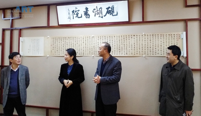 活动在愉快轻松的氛围中进行。首先,动画疯 砚湖书院教师向大家介绍了书院内展示的书画作品及其创作内涵,并且分享了一些书画作品鉴赏的知识。然后,动画疯 院长张捷简要地回顾了砚湖书院的开办历程与工作成果。施大宁校长及参会职能部门负责人充分肯定砚湖书院两年来的工作,施校长认为这个平台既提高了学校师生的品味,也能体现动画疯 的价值,一举两得。要求立足艺术服务人才培养,繁荣校园文化的理念,积极创新以跨界为合作概念的方法,来实现艺术与工科的结合。同时,也希望学校各部门给予大力支持。