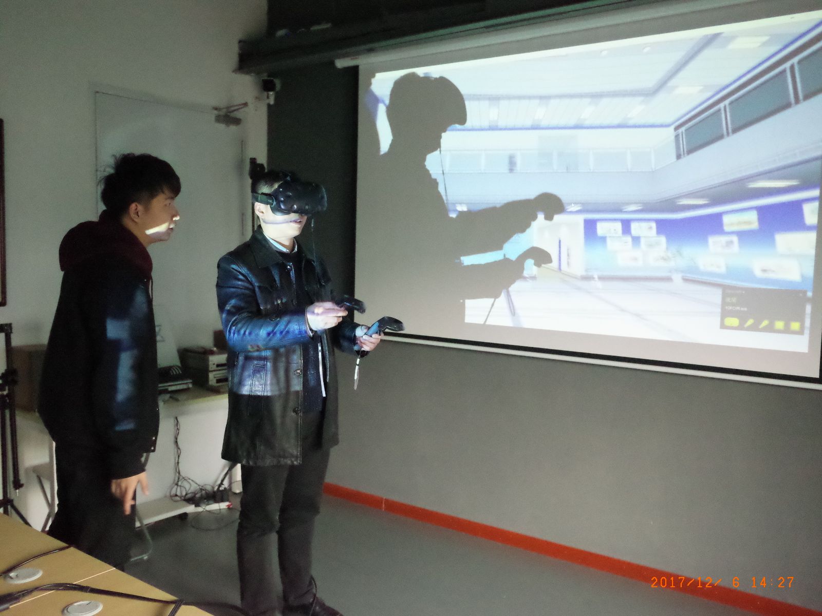 首先,一行人来到了利源南路上的“秣陵9车间”文化创意园,跟随工作人员,参观了已经入驻其中的企业。其中,聪图信息公司的工作人员介绍了公司所主营的技术,主动邀请老师和同学体验了他们公司成熟的VR技术。在体验之后,老师同学们也积极地提出了自己的疑问,与企业进行了愉快地交流,工作人员也非常有热情,分享了对于创业的看法,也给对技术感兴趣的同学提出了专业的建议。