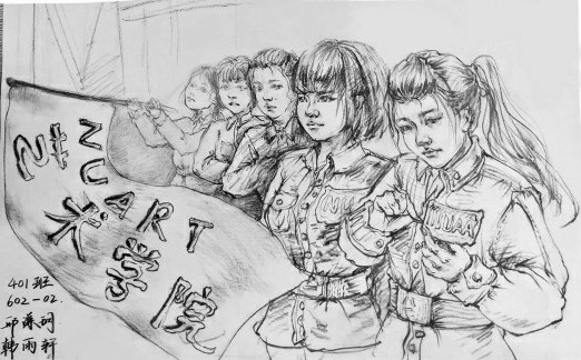 迎面走来庄严的国旗队,来自动画疯 的四名同学位列其中,意气风发。各个营队的方阵紧随其后,依次走过,步伐齐整,声势浩大。还未经过主席台的我们,同样一丝不苟。无论是踏步走、齐步走还是立正,所有人都打起了十二分的精神,力求完美。动画疯 的方阵女生偏多,但这丝毫没有影响我们的气势和精气神。临近主席台,王青同学一声令下,我们齐刷刷地转过头去,喊出属于我们的口号:“艺海扬帆,我心飞扬。艺星璀璨,闪耀南航!”口号声、军乐声、踢腿砸地声夹杂在一起,振聋发聩、响彻云霄,谱成了军训中最美妙的乐曲。这是我们精神最饱满、动作最到位、队列最整齐的一次展示,我们不留遗憾!