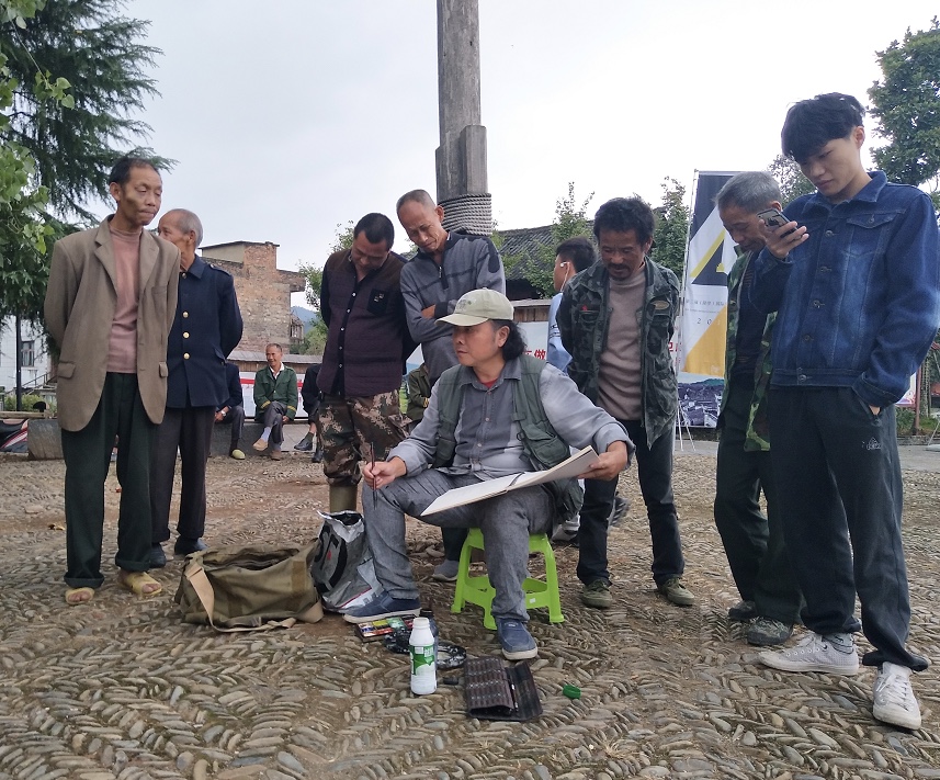 这次在隆里王立庆除了参加写生作品展和艺术节外,还参加了“写意中国”参展艺术家在隆里举办的美术公益授课活动,义务为当地孩子进行绘画授课。