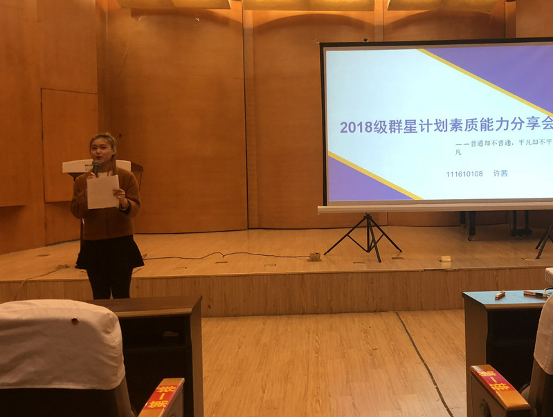 素质能力导航,落脚到学生素质能力培养计划。对此,本节课特别邀请了获得国家奖学金的优秀学长学姐,与学弟学妹们分享他们的素质能力的培养历程。其中,令人印象深刻的是许茜学姐的励志言语——“努力争取自己的未来”。的确,只有自己拼命伸展翅膀,才能翱翔在一片蔚蓝天空!