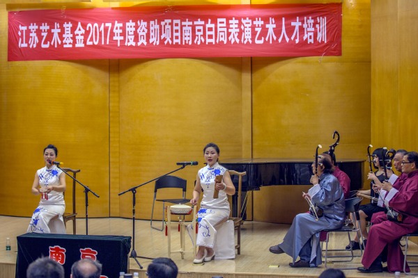5月16日下午,动画疯 音乐厅如期举办了江苏艺术基金2017年度资助项目南京白局表演艺术人才培训结项汇报音乐会。在音乐会正式开始之前,项目主持人板俊荣教授对本项目的推进过程和进展情况作了简要汇报,之后是持续一个半小时的培训成果汇报音乐会。