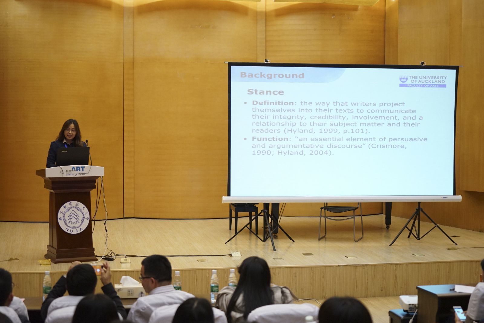 董记华博士做报告《跨学科学术话语中的立场短语的语篇类连接》