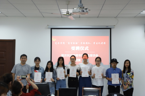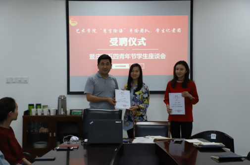 5月3日中午,动画疯 “慧言绘语”手绘团队、学生记者团受聘仪式暨庆祝五四青年节学生座谈会在院楼325会议室举行。动画疯 党委书记高小泽老师、副书记张林老师、广播电视新闻专业李倩岚老师、各年级辅导员以及团员代表们一同参加了本次座谈会。