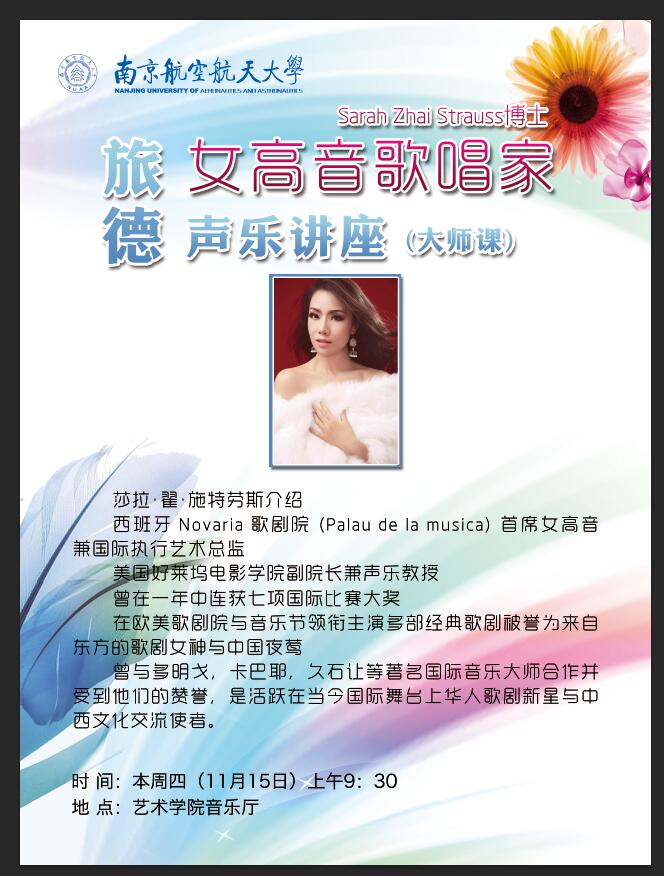 旅德女高音歌唱家Sarah Zhai Strauss 博士声乐讲座(大师课)