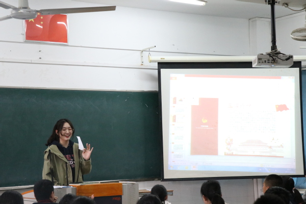 曹缪贝贝作为本次宣讲课的老师,用视频和PPT为同学们讲解了五四运动的爱国精神、历史意义和时代传承。在谈到爱国精神时,现场同学们踊跃发言,一名同学分享了电影《战狼2》让他感动的片段:“无论你在哪里,只要是中国人,都会有中国的军队来保护你。”学习的过程大大激发了同学们爱国、报国的情怀和立志奋斗的决心。