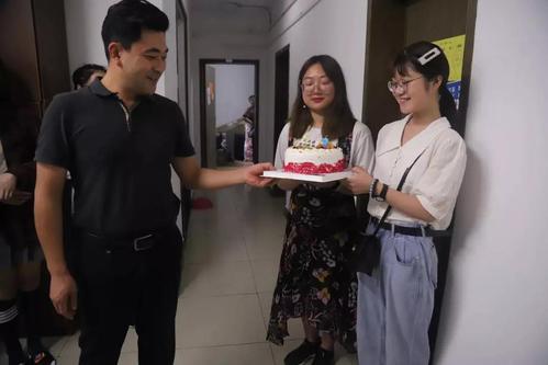 学院领导非常重视迎新工作,迎新报到的第一天就来到了新生宿舍,与学生和家长进行交流,询问新生来南京是否习惯,宿舍环境是否满意等。恰逢戏剧影视美术设计专业的范辰希、广播电视学专业的罗曦妮将要过生日,学院领导和同学们一起,在宿舍里给这位同学庆祝了一个特别的生日,在对新生活的憧憬和美好的生日祝福中,两位同学的大学生活一定会有一个非常幸福的开篇。