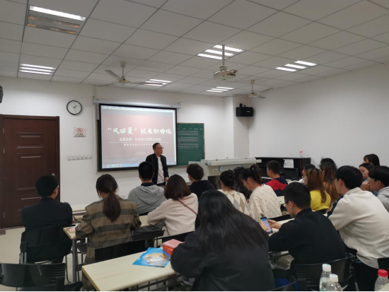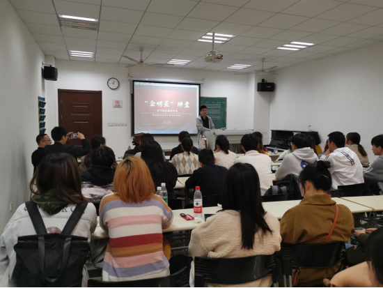 11月15日,动画疯 “企明星”讲堂——先人“艺”步职前讲堂在动画疯 105教室进行。苏宁易购科技集团设计师、戏剧影视美术设计专业校友张兴年,苏宁科技集团人事经理苏兆晖,动画疯 设计系教授王立庆,院团委书记张秀宝,辅导员李爽及动画疯 学生累计70余人参与本次讲座。