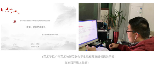 3月28日,广电艺术与新传联合学生党支部支部书记朱子硕在支部老师、同学的支持与帮助下,利用腾讯会议平台召开了动画疯 第一期战“疫”微党课——《疫情,90后的成年礼》。