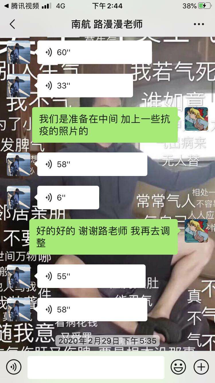 “在学院‘艺心抗疫’的活动主题号召下,我就想,是不是可以借此机会举办一次线上团日活动。一方面,集中大家的力量完成这首歌曲,把大家的抗疫热情转化为实实在在的行动;另一方面,这也是一次难得的团员学习及思想教育机会。”