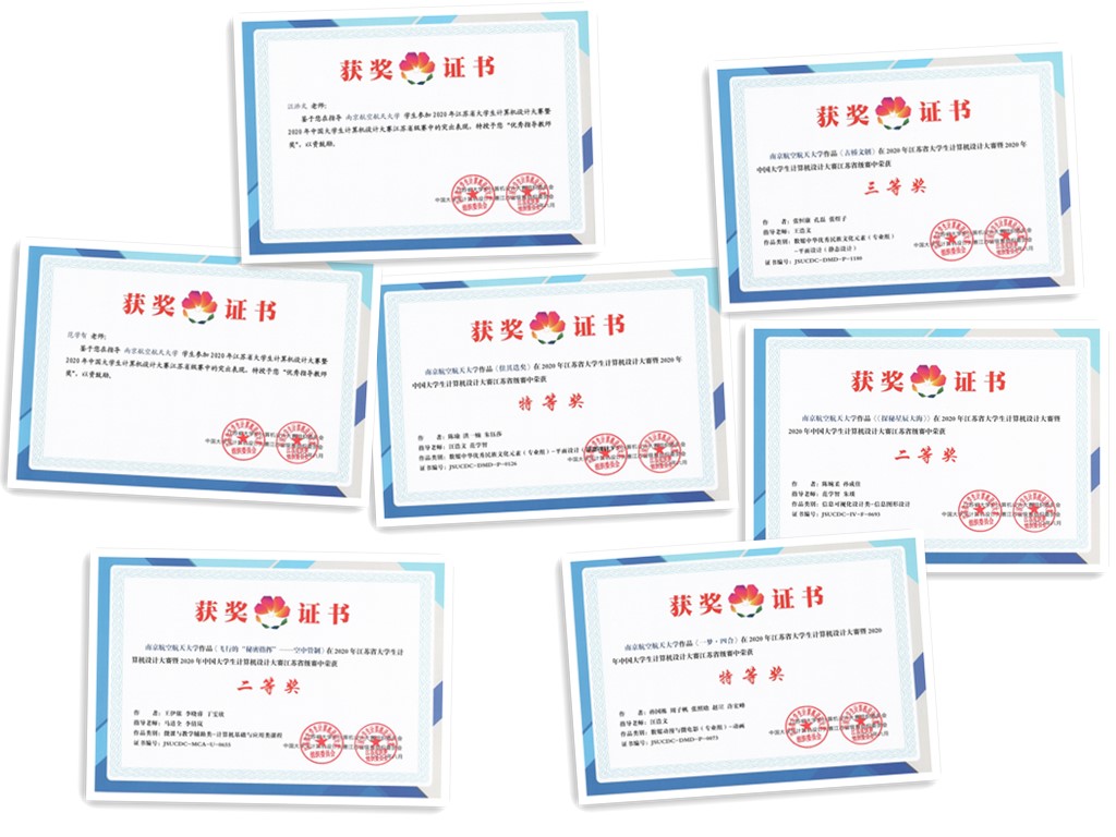 日前,由教育部高等学校计算机类专业教学指导委员会主办的“2020中国大学生计算机设计大赛江苏赛区竞赛”已落下帷幕,动画疯 美术系、新闻系师生通力合作,从设计、动画、微电影、微课创意等多个赛道积极组织参赛,经过近两个月作品打磨和精心指导,动画疯 参赛作品最终在全省84所高校907组作品中脱颖而出。孙国栋等同学创作的《一梦•四合》获动画类特等奖,陈瑜等同学创作的《隹其迭矣》获平面设计类特等奖,王伊依等同学创作的《飞行的“秘密指挥”——空中交通管制》以及陈婉柔等同学创作的《探秘星辰大海》分获微课与教学辅助类和信息可视化设计类二等奖,张恒康等同学创作的《古桥文创》获平面设计类三等奖。汪浩文、范学智两位老师获优秀指导教师奖,才漪获优秀管理员奖。