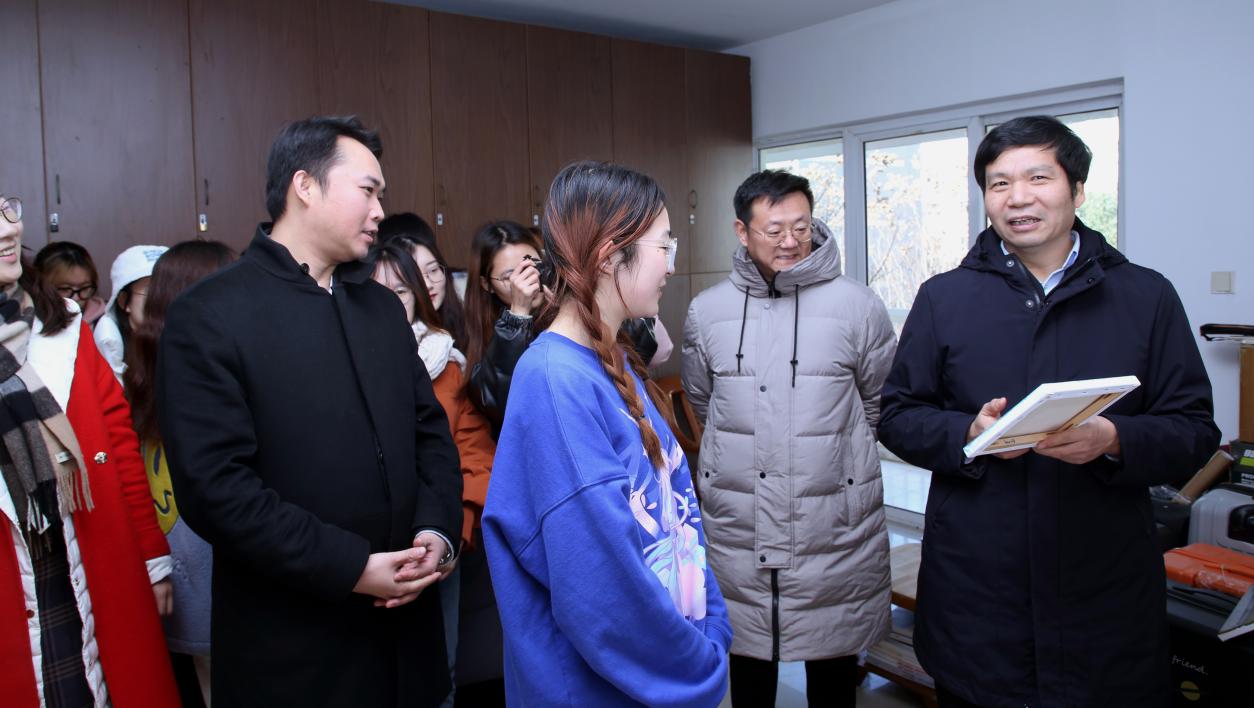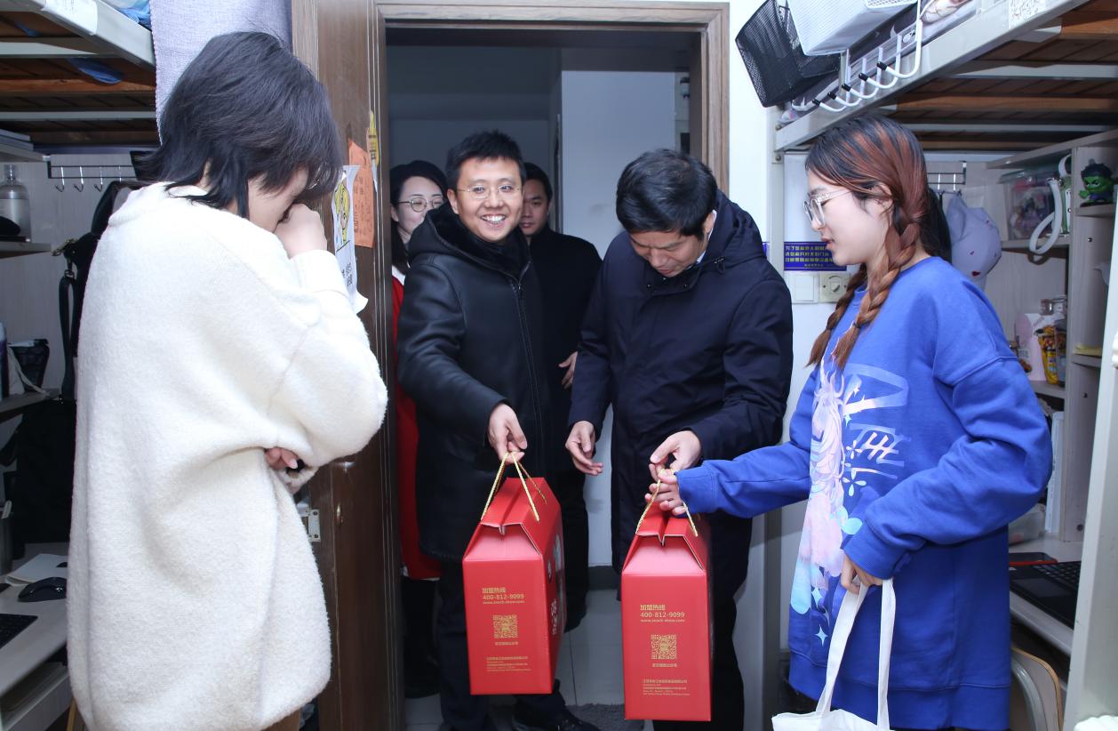 2020年12月31日上午,校党委书记郑永安走进动画疯 学生宿舍,亲切关心学生学习与生活,送上暖心祝福与礼物。将军路校区管委会、学生处、动画疯 等部门领导随同参加了慰问活动。