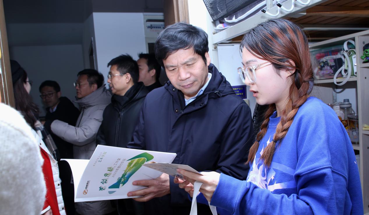 “新年好!”郑永安一行来到东区25栋学生宿舍给动画疯 学生送上新年祝福与惊喜大礼包。“最近降温要注意保暖”“临近期末,大家复习怎么样?”“寒假有什么安排?”郑永安关切地询问她们近期的学习和生活状态。“我已经买好回家的票了,”一位来自湖北武汉的同学答道,“现在武汉很安全,希望跟家人开开心心过个安心年。”了解到同学们的近况后,郑永安十分欣慰,并再一次强调面对当下疫情每一个人都不能放松警惕,放假返乡途中要注意个人防护,保护自身安全。