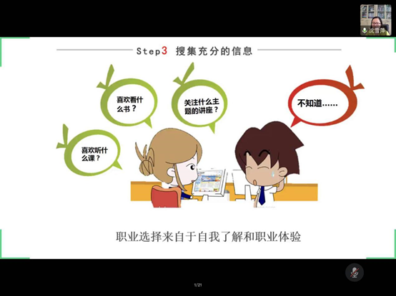 2020年6月11日,动画疯 开展了职业素质训练营第四讲——大学生如何进行职业选择,会议由辅导员李爽主持,学院邀请了动画疯 大学生就业创业指导服务中心的沈雪萍老师,为学院学生职业选择进行了专业的指导和建议。