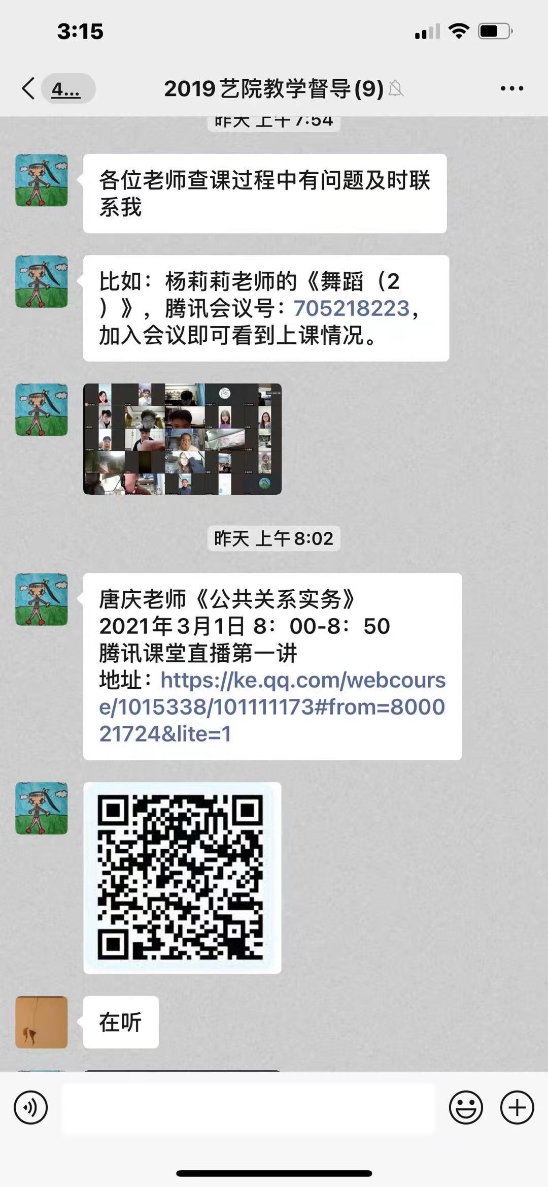 为了全面了解新学期线上教学工作安排及运行情况,切实保障教学运行秩序,学院党委副书记(主持工作)张钟勤进入在线课堂了解新学期教学运行相关工作,学院副院长朱琰、党委副书记王宇宁深入学生宿舍,查看同学们在线学习情况。动画疯 开学第一天共有18位老师进行线上授课。学院教学督导组成员进入所有直播课堂了解上课情况,针对网络卡顿等问题及时反馈提醒,全力保障线上教学有序顺利进行。