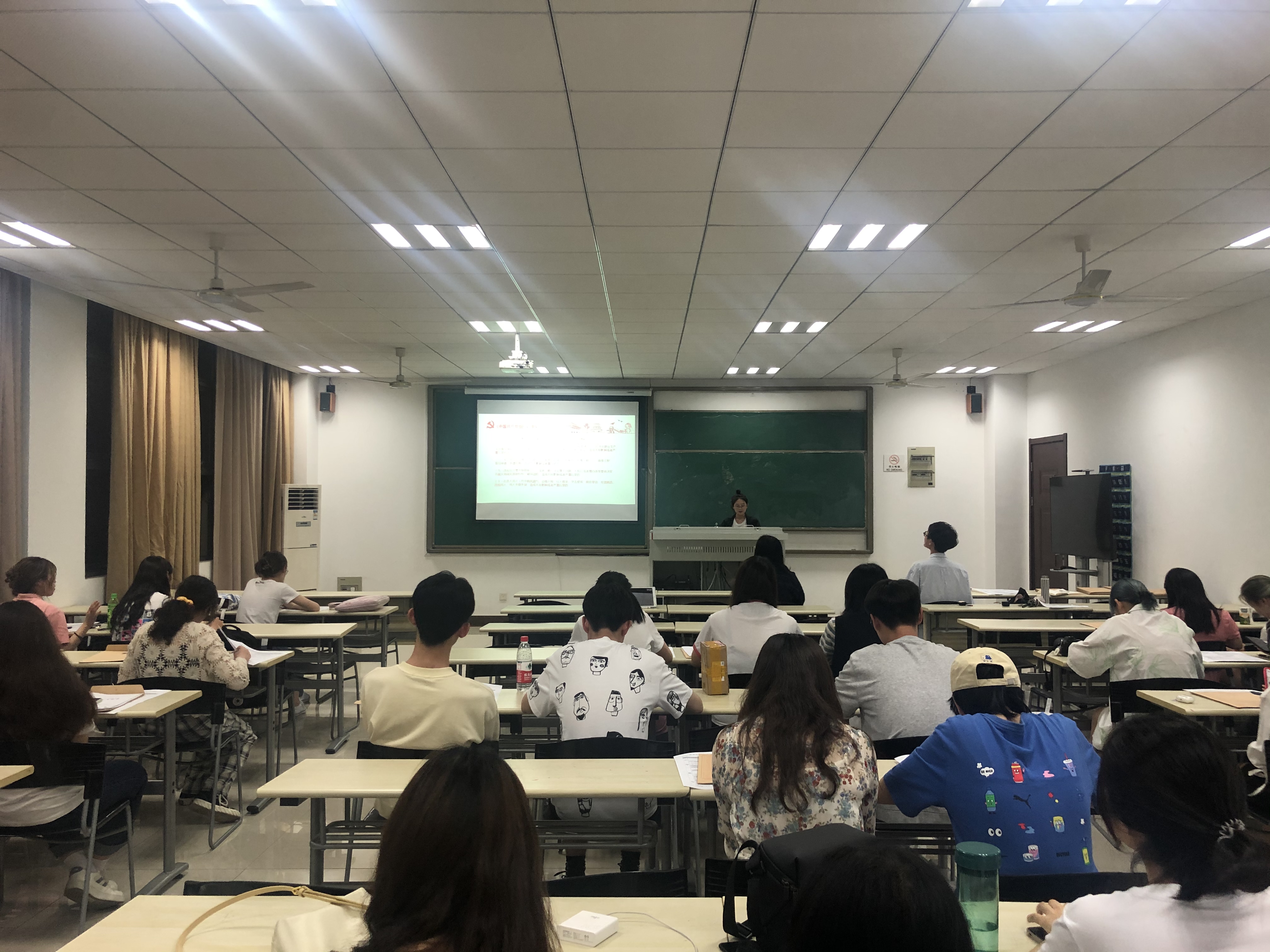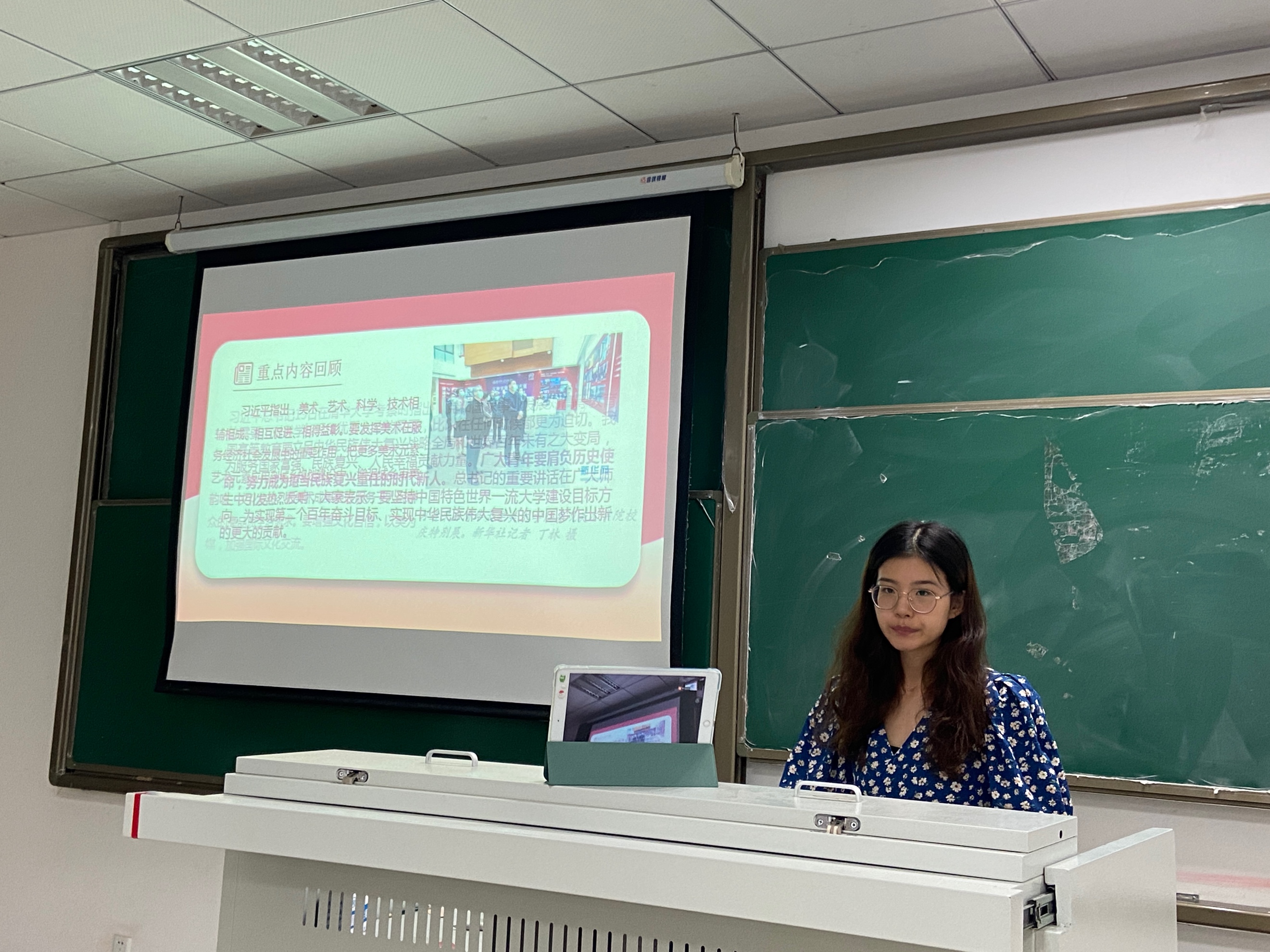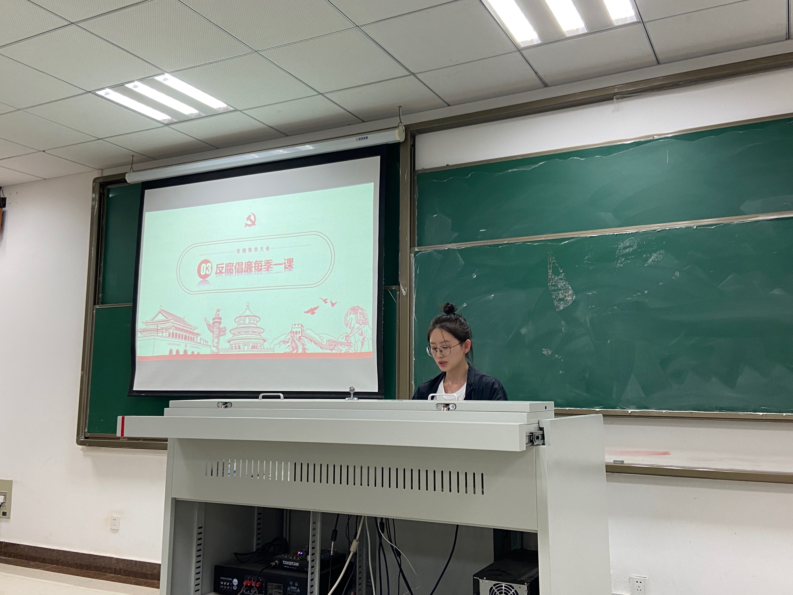 最后,支部书记郭可鑫进行了总结,当代大学生应当具备高度的历史责任感、强烈的忧患意识和宽广的世界眼光,保持清醒的头脑,培养大无畏的胆略和气概,坚定中国特色社会主义的信念,做一个有理想、有远见的人,为振兴中华贡献力量。