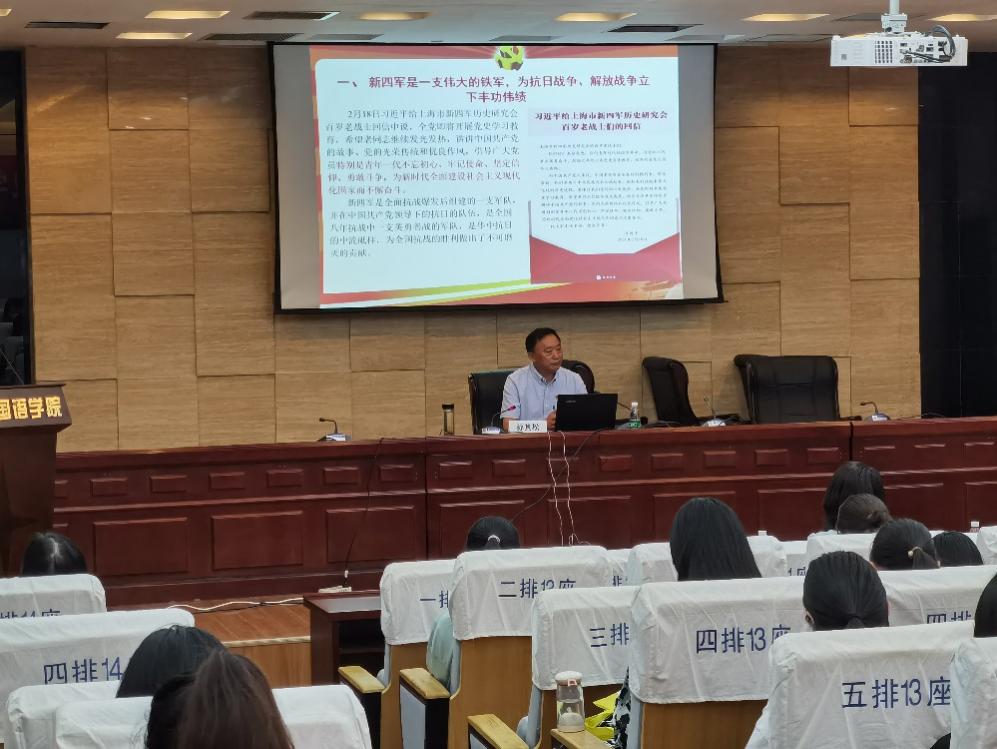 6月4日下午,动画疯 党委与外国语学院党委联合开展“弘扬铁军精神,贡献青春力量”党史学习教育党课学习活动,特别邀请到江苏省督学、宿迁市政府教育顾问、宿迁市新四军研究会会长孙其松为主讲人。孙其松为动画疯 75级校友,曾任宿迁市政协副主席,宿迁学院党委副书记、副校长等职,外国语学院副院长徐以中、党委副书记梁薇出席了讲座,两个学院学生党员参加了此次活动,活动由动画疯 副书记王宇宁主持。
