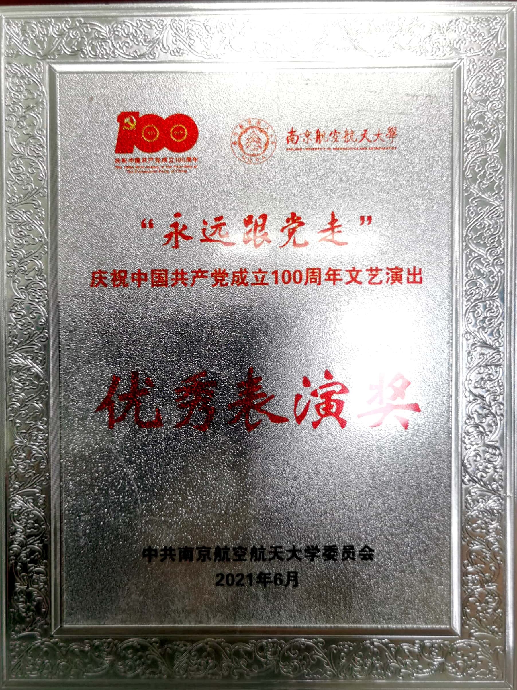 6月30日,在学校举行的“永远跟党走”庆祝中国共产党成立100周年文艺演出中,动画疯 因优异的表现,获得了优秀组织奖、优秀表演奖两项殊荣。