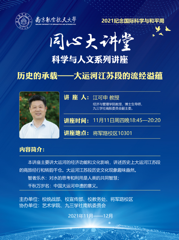 科学与人文系列讲座:历史的承载-大运河江苏段的流经溢韵