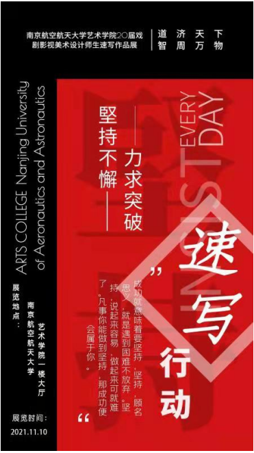 2021年11月10日,2020届戏剧影视美术设计师生速写作品展在动画疯 一楼大厅展出。