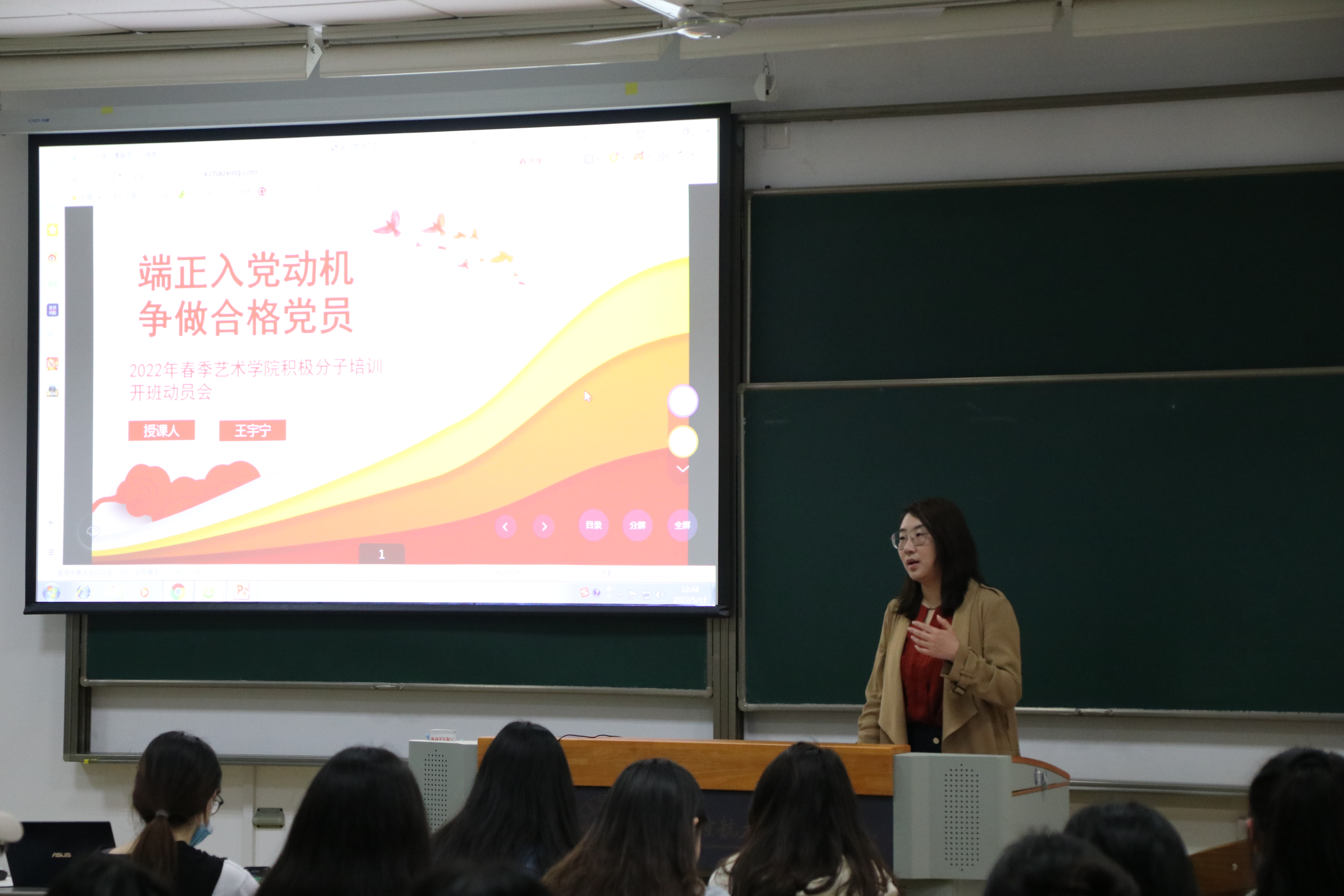 举行了2022年度积极分子培训开班动员会。学院党委副书记王宇宁以“端正入党动机,争做合格党员”为主题,为入党积极分子讲授入党第一课。学院组织员孙吟吟老师、动画疯