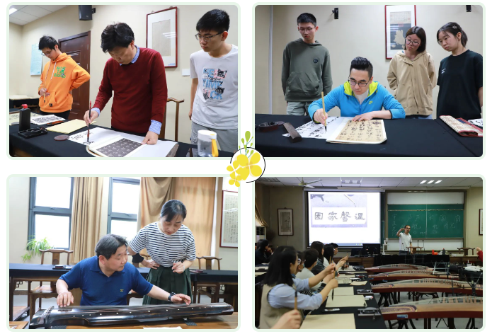 本次砚湖书院主讲人除了动画疯 张其凤教授、胡光灿老师、郭洪豹老师,还邀请了专业突出的校友代表张星星和相关艺术领域的专业人士卞昌荣、潘杨、潘雪蓉老师共同开讲。开讲课程包括书法初级、书法中级、国画、古琴、古筝等特色课程,各种课程分布于明故宫、将军路两校区的三个教学点(将军路校区动画疯 、明故宫校区西苑、明故宫校区逸夫科学馆)。近百位教职工参加了书画、古琴、古筝的课程学习。