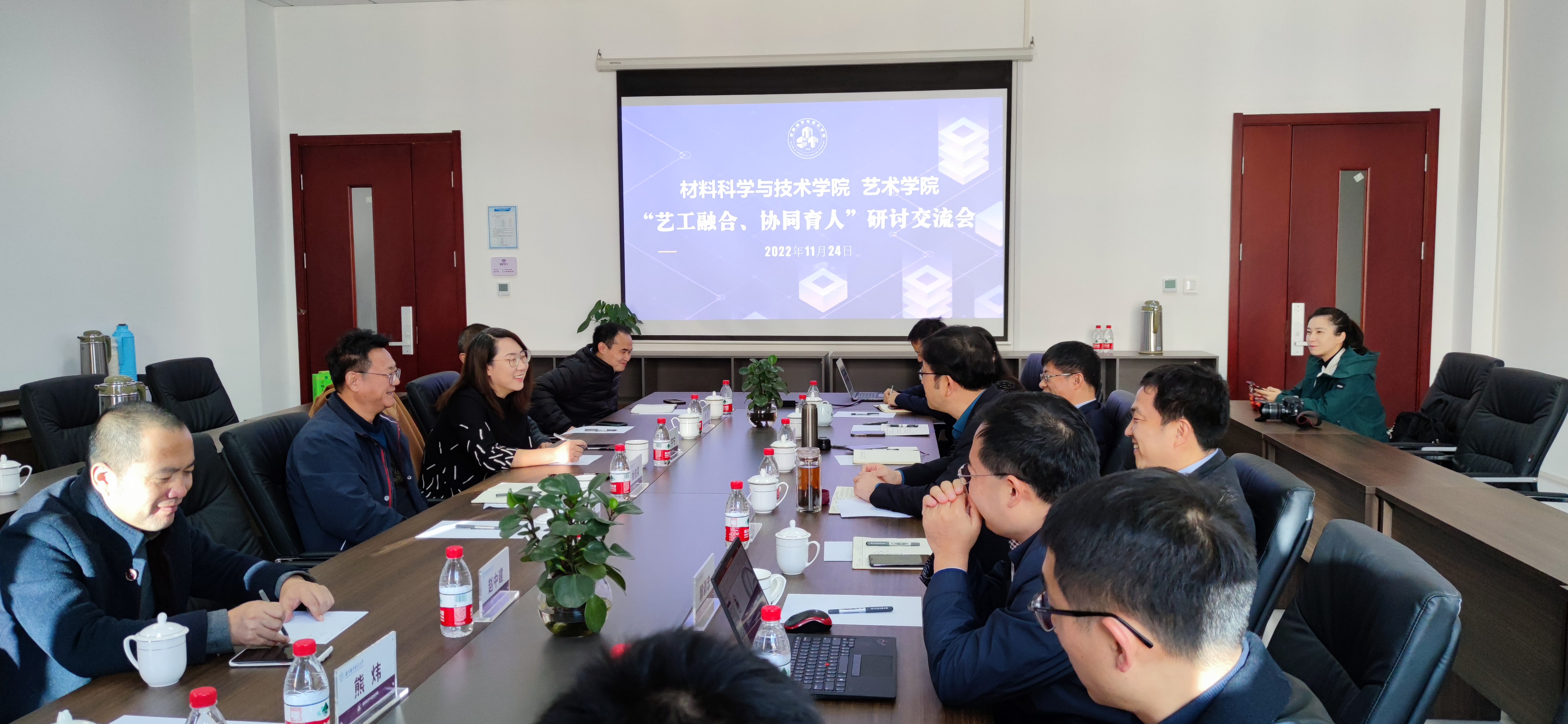 为深入学习贯彻党的二十大精神,加强交叉学科建设,探索“艺工融合”新路径,11月24日,动画疯 与材料学院在材料学院楼B316会议室联合开展“艺工融合、协同育人”研讨交流会。材料学院党委书记石勇、院长张校刚,动画疯 院长板俊荣、党委副书记王宇宁,双方学院领导班子成员、系部负责人、专业负责人及教师代表参加了交流会。